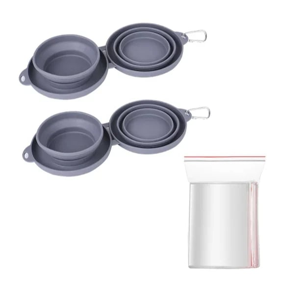 Smart Design: Our medium collapsible dog bowl set is designed with a slow dog feeder bowl and a dog water bowl for walking, hiking and camping! These features help your pet eat at a healthy pace and keep your camping or travel area clean. You can also adjust the bowl size on our convenient traveling dog water bowl set making it easy to feed varying portion sizes. This dog and cat collapsible bowl has a non-skid, flip proof silicone mat to help prevent bowls from moving around, tipping and spilling.